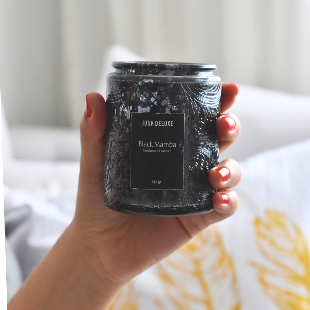- Rincón de lectura: ubicála al lado de una butaca, una manta y una lámpara de pie; la luz baja de la vela termina de completar el clima acogedor.