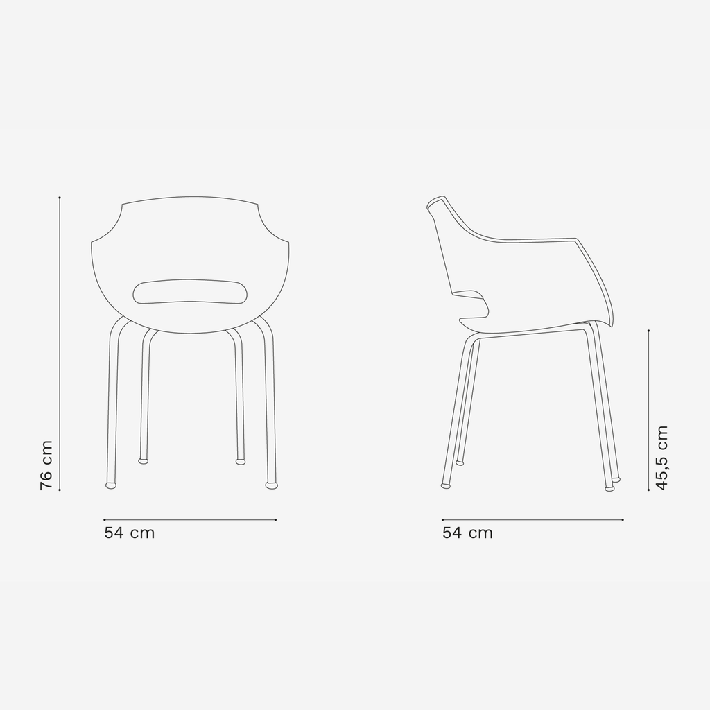 Ancho 45–48 cm • Prof. 50–54 cm • Alto 80–84 cm • Altura de asiento ~45 cm |