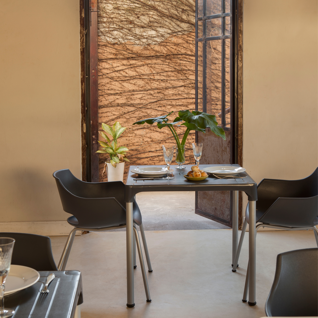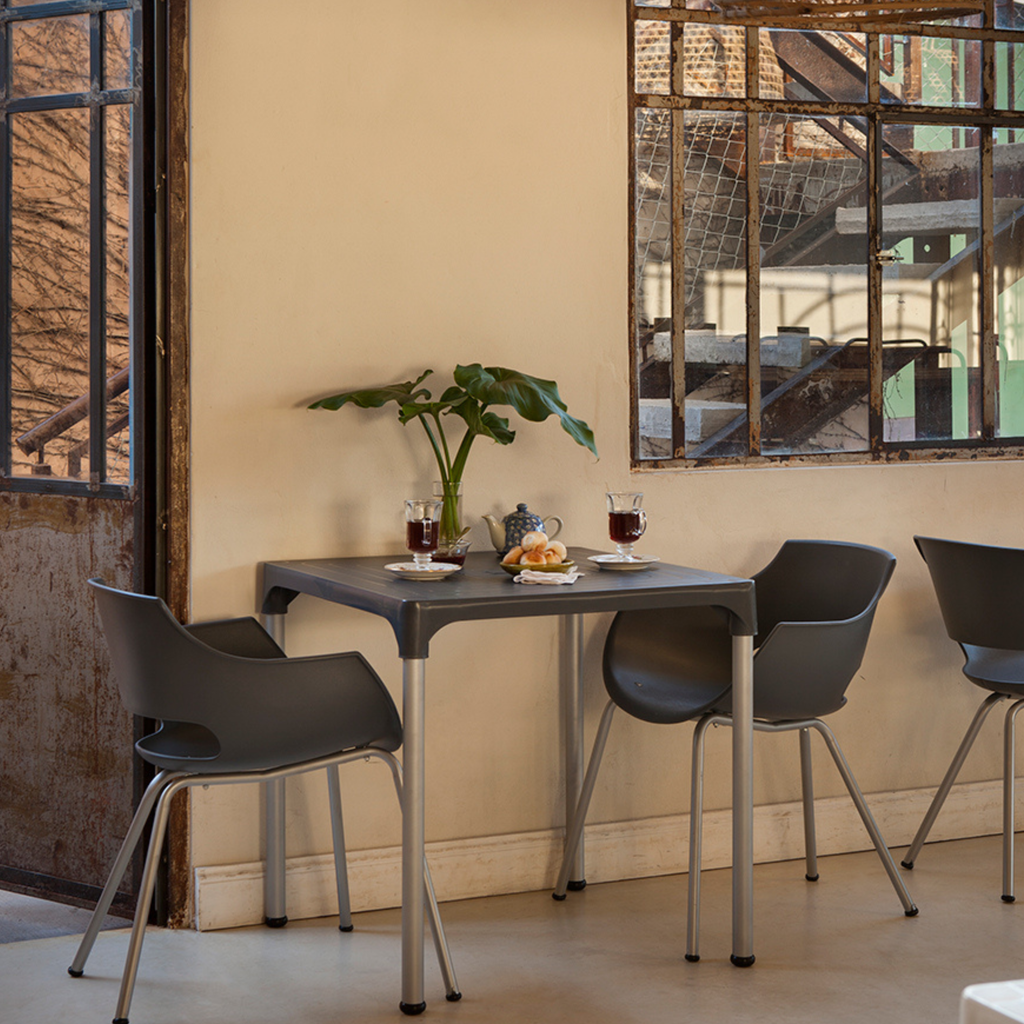 La Silla Frida es la aliada perfecta para espacios cotidianos: un asiento plástico resistente y fácil de limpiar, combinado con patas grises microtexturadas que aportan estabilidad y un look moderno. Disponible en varios colores para adaptar a tu estilo.