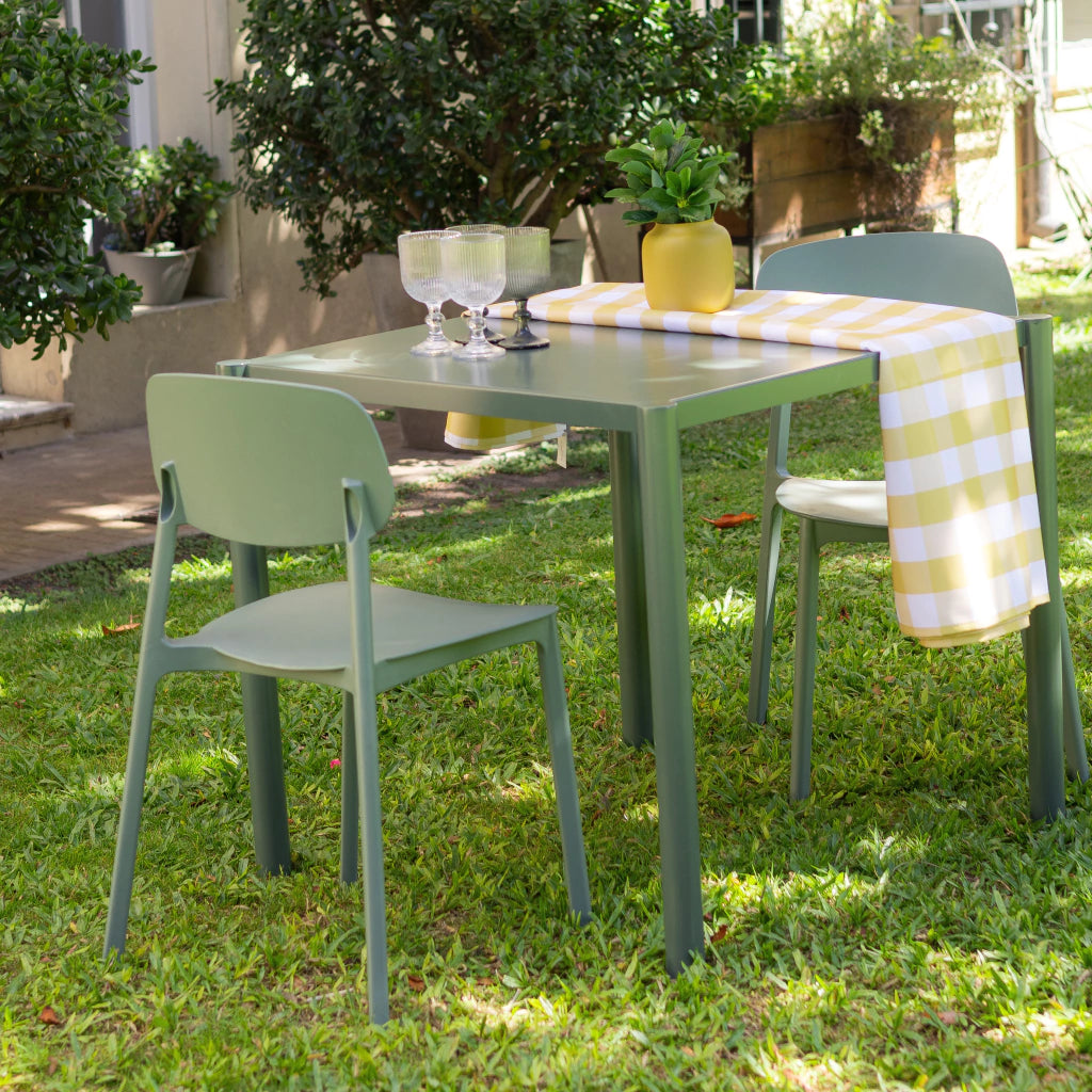 - Mesas de exterior y sillas de exterior si estás armando un quincho o galería completa.
