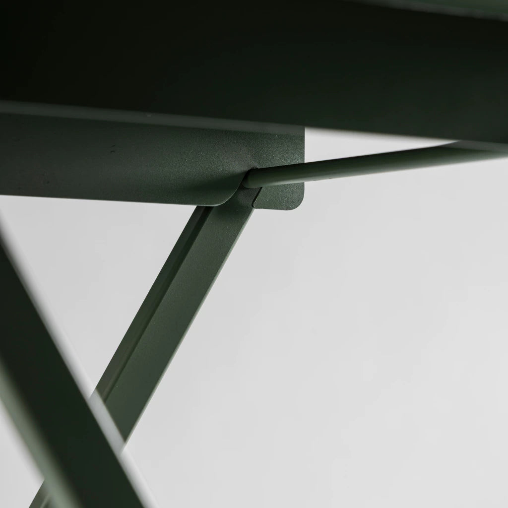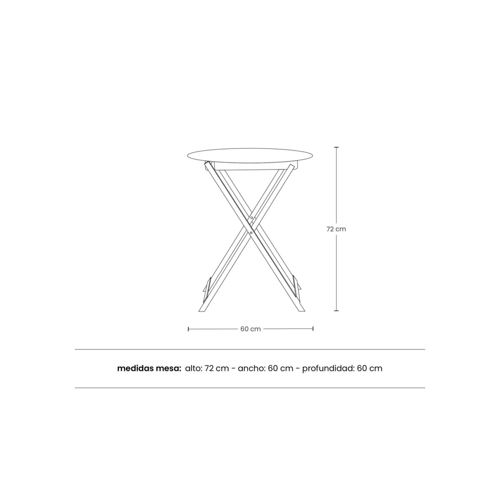 Su diseño plegable te permite liberar espacio en segundos. Perfecta como mesa auxiliar para desayunos o reuniones, ofrece la resistencia de la chapa con un mantenimiento sencillo.