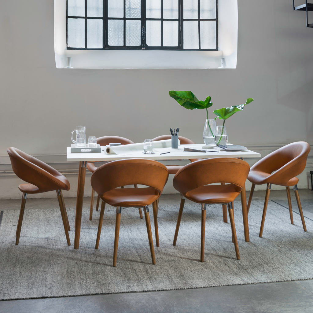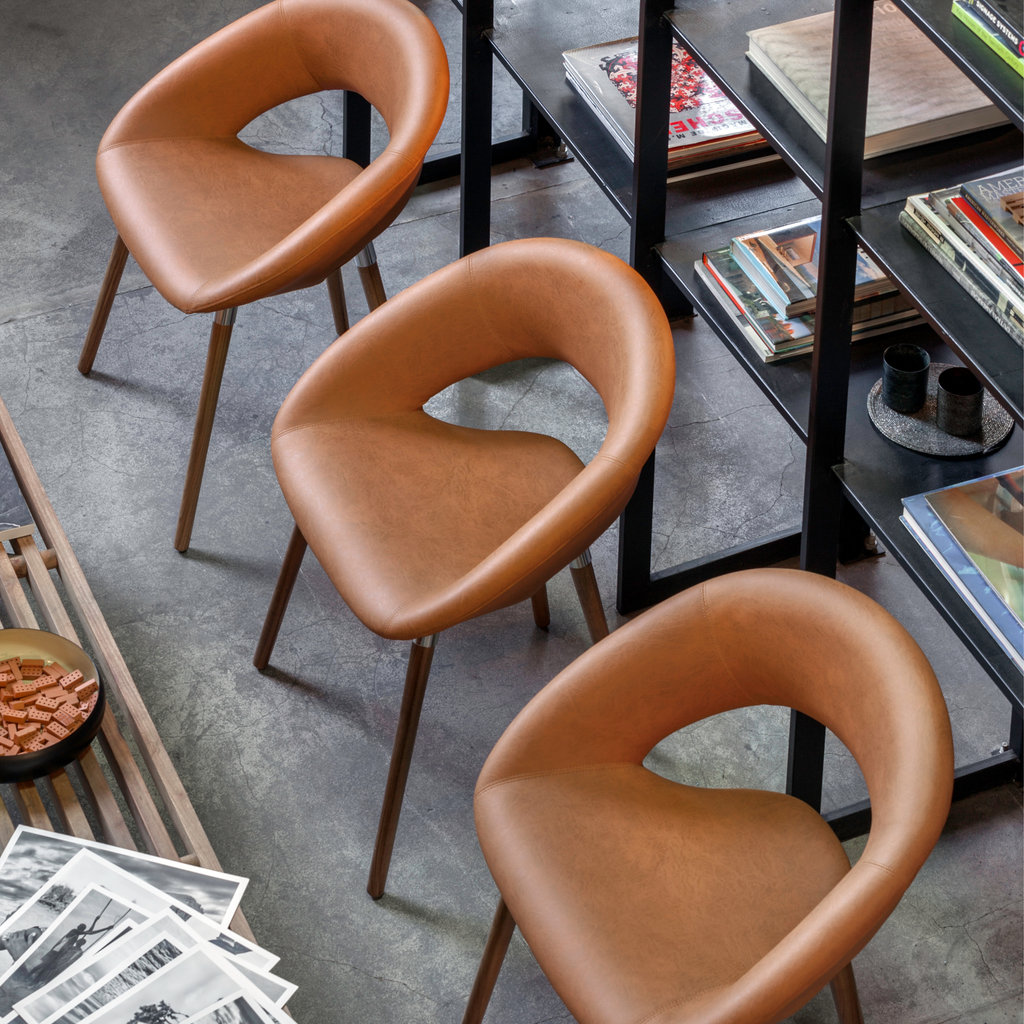 Transformá tu ambiente con la Silla One Wood, que combina tapizado en ecocuero de calidad, patas de madera clara y una silueta pensada para destacar con presencia y confort.