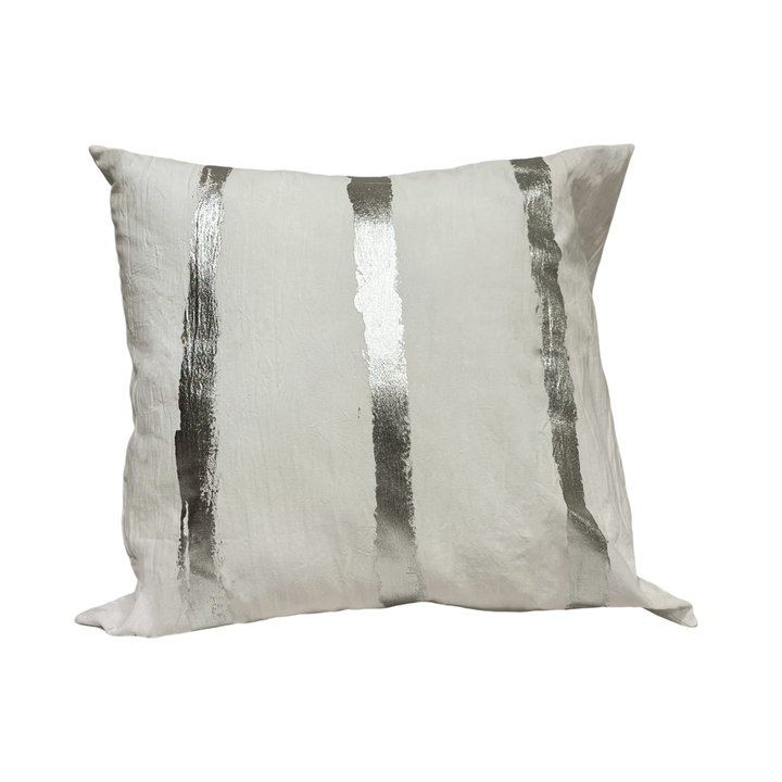 ¡APROVECHÁ LAS 6 CUOTAS SIN INTERÉS!Almohadón tusor rayas plateadas con relleno de vellón siliconado