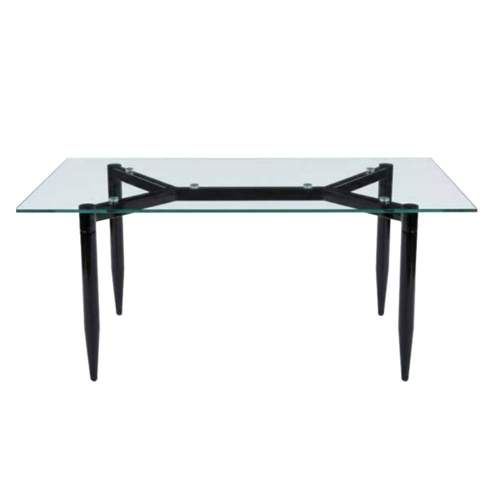 Mesa Hygge 1,60 m con tapa de vidrio y patas metálicas pintadas de madera negra